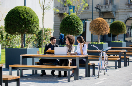 An open-plan, flexible workspace designed to encourage collaboration, networking, and productivity.